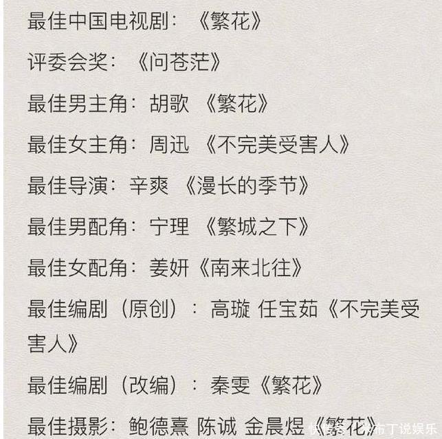 ——取得最好女主角奖的是周迅,她凭借电视剧中《不完好意思受害东说念主》林阚一角成为新晋白玉兰奖视后;咱们知说念,她亦然个老戏骨了,在《风声》,《画皮》,《听风者》,《你好,之华》,《如懿传》,《心网》,此次凭借林阚而取得大奖。