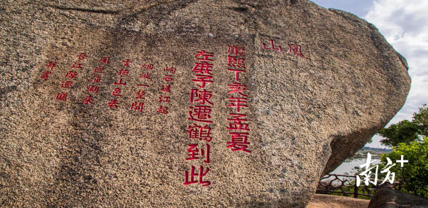 凤山最著明的石刻是凤凰台凤喉石上,康熙丁亥年孟夏左庶子陈迁鹤留住的《凤山石崖摩刻》,诗曰:“峋石渡江起,烟波一望开。雪拖山色去、风送波浪来。”比年来,岐石镇凝华社会力量,加强文物保护与绿化造林,开辟登山步说念、“520”打卡点、凤来亭,涂红石刻等。登上凤山,海湾、水塘、江河、肥土与远山尽收眼底,有劲激动当地文旅和会发展。