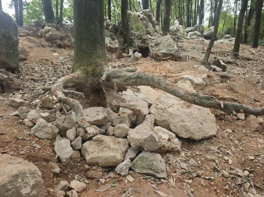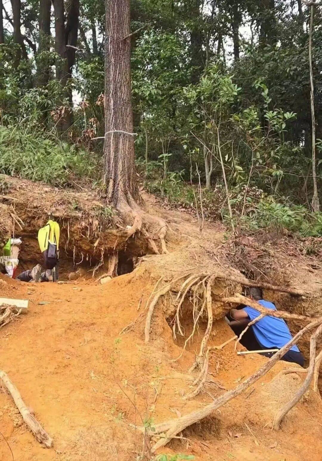 受“采石挖矿”影响,暹岗大山部分树根闪现、地表出现孔洞。受访者供图