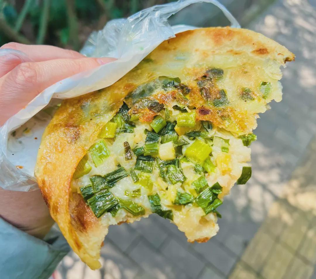住在隔邻的阿婆说:“她作念的葱油饼能吃出来老上海小巷里的传统滋味。”热乎出炉的葱油饼咬上一口,外表酥脆,内部葱香四溢,撕开一块,猪油和葱香直冲鼻腔,早餐吃上一个饼就措置。除了葱油饼,这里还卖鸡蛋灌饼,可免费加土豆丝、豆皮等小菜。