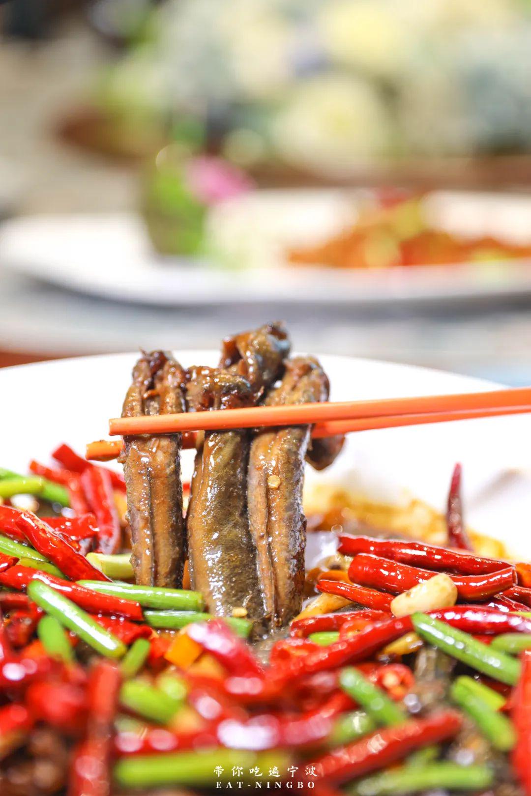 光闻到麻香滋味,就足以长远灵魂了,厨师贯串衢州菜的作念法,将跳跳鱼掩埋在辣汁中。