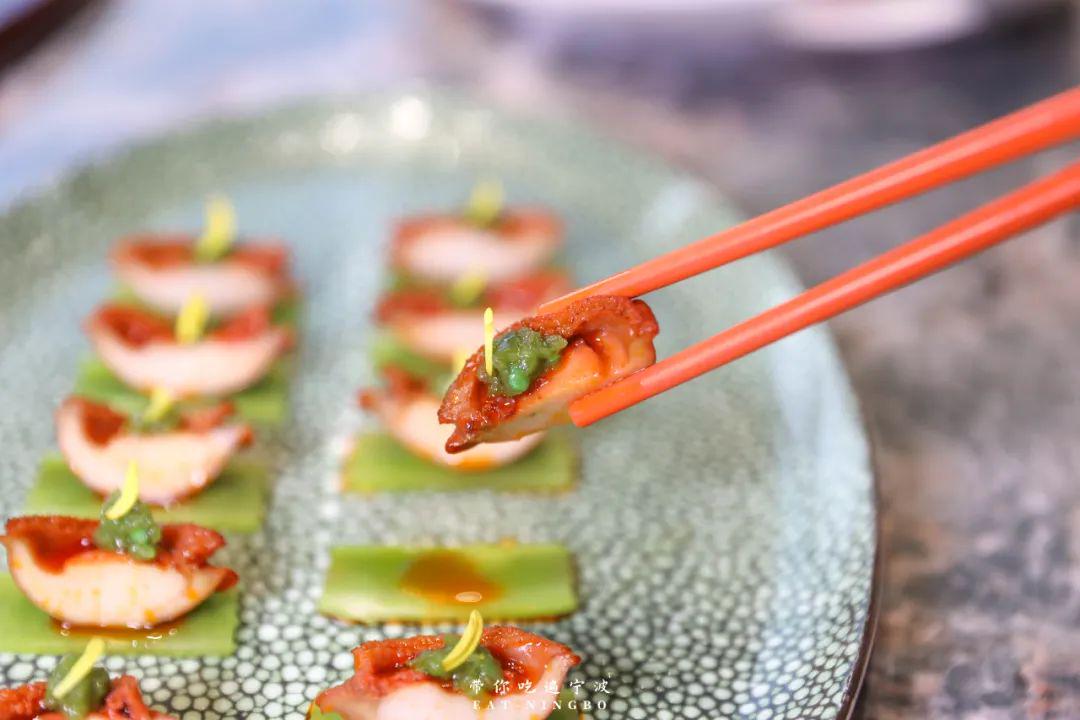一口吃下去,就是牙齿力度与鲍肉对于Q弹的顽抗,添上椒麻酱,极少点辣味配置了这一口鲍鱼的不落俗套!