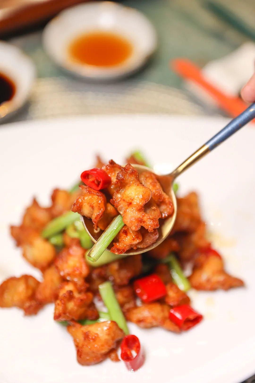 虾仁被剁成虾蓉包裹,增添了一点绵密,外表领有的空气感,让这一口食之紧记。