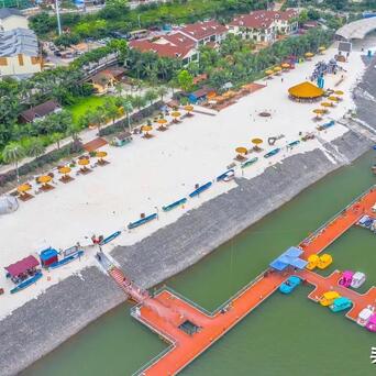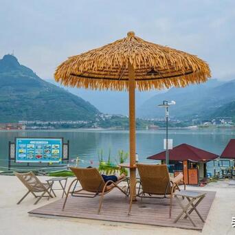 云南的水富的邵女坪,这里是金沙江的结尾,因为有大坝的存在,这段金沙江水是碧绿色的,当然环境一流,这里正本是座清秀的村镇,但自后开荒成一座半圆形大型旅游度假区开云体育,插足很大,但东说念主气不旺,好多店铺王人莫得开门,沙滩是免费怒放的,度假区半环形路上泊车亦然免费,还能坐渡船去河对面的古镇,嗅觉主要目的地是竖立度假区屋子,旅游做事运营经心未几。