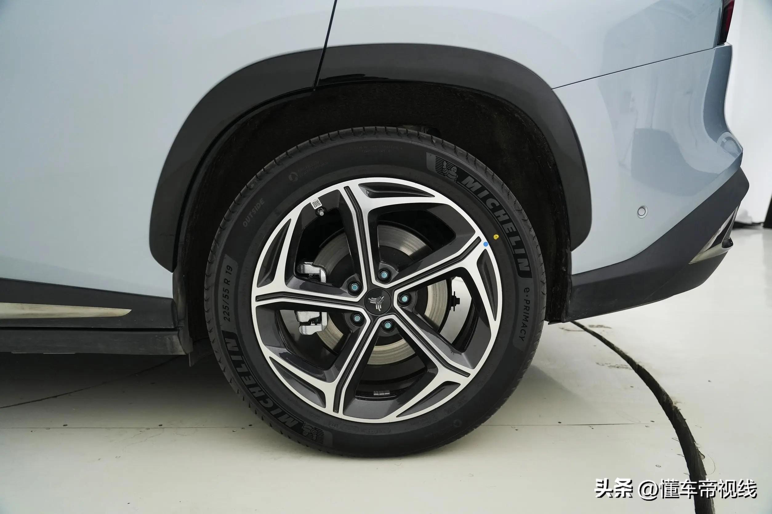 车顶线条从B柱运行下滑,酿成一定的溜背造型,况兼还配有守密式门把手。尺寸方面,哪吒L长宽高差异为4770/1900/1660毫米,轴距为2810毫米。该车配备了19英寸五辐模样轮辋,轮胎规格为225/55 R19。