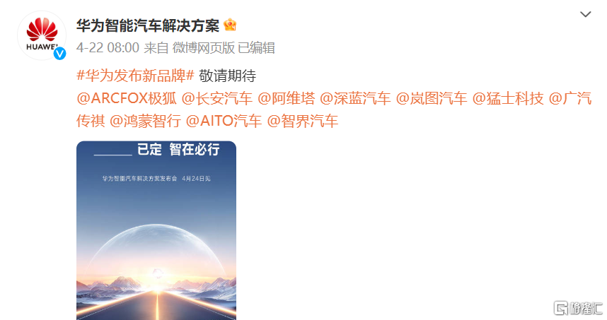 就在两天前,华为智能汽车继续有规划官方微博在为新品牌发布会预热时,邻接@了10家车企。