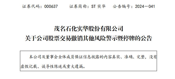 ST实华在6月11日回复深交所问询函暗意,经公司逐项自查,并与公司长年法律照看人和年审管帐师事务所进行核实,公司不存在应当被推论退市风险警示和其他风险警示的情形。ST实华指出,公司里面规章颓势已整改完成,里面规章能有用脱手,妥当毁灭其他风险警示的条目。
