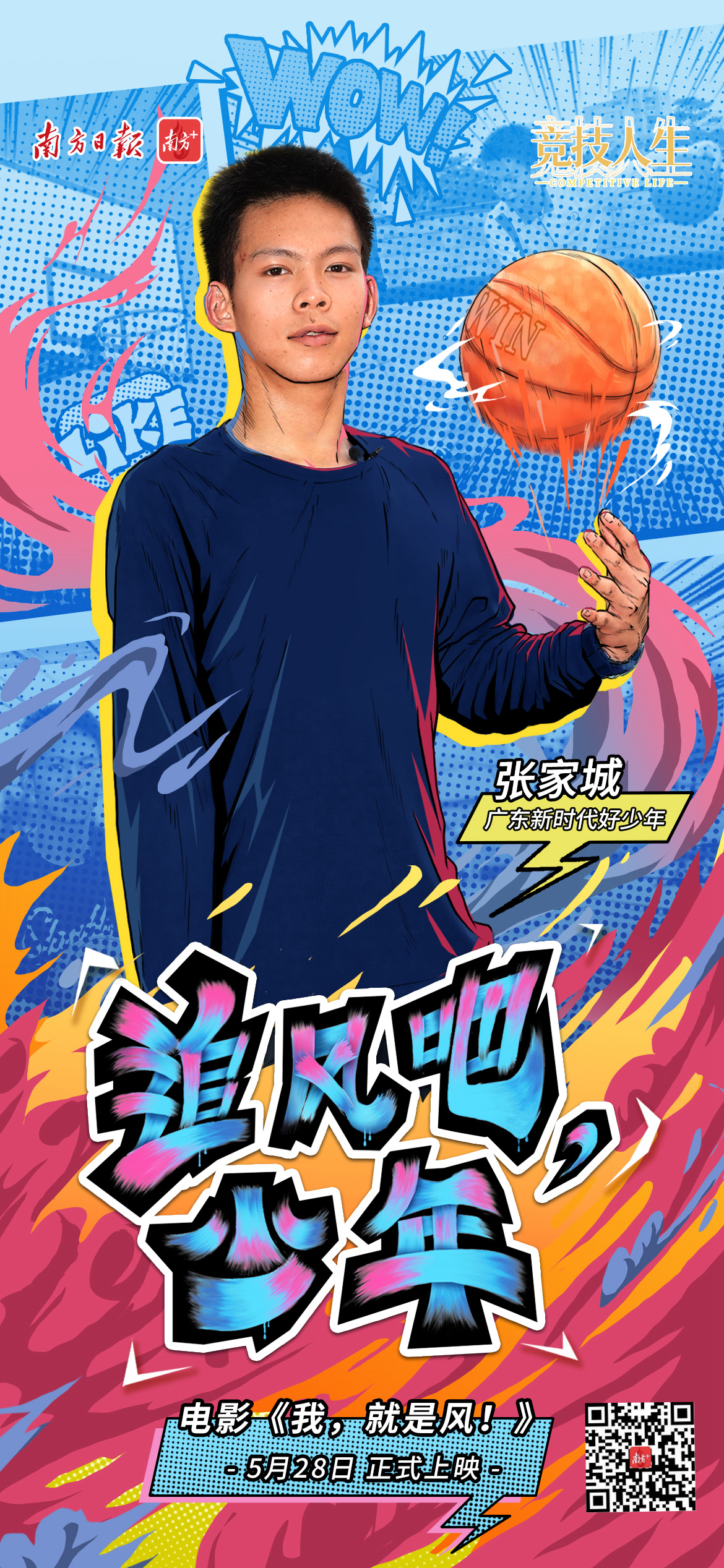 5月28日,成长励志电影《我,即是风!》肃穆公映。这部改编自广东云浮独臂篮球少年张家城的真确成长故事、由他本东谈主骨子主演的电影,齐全展现了他成名以来的东谈主生资格和通顺活命。