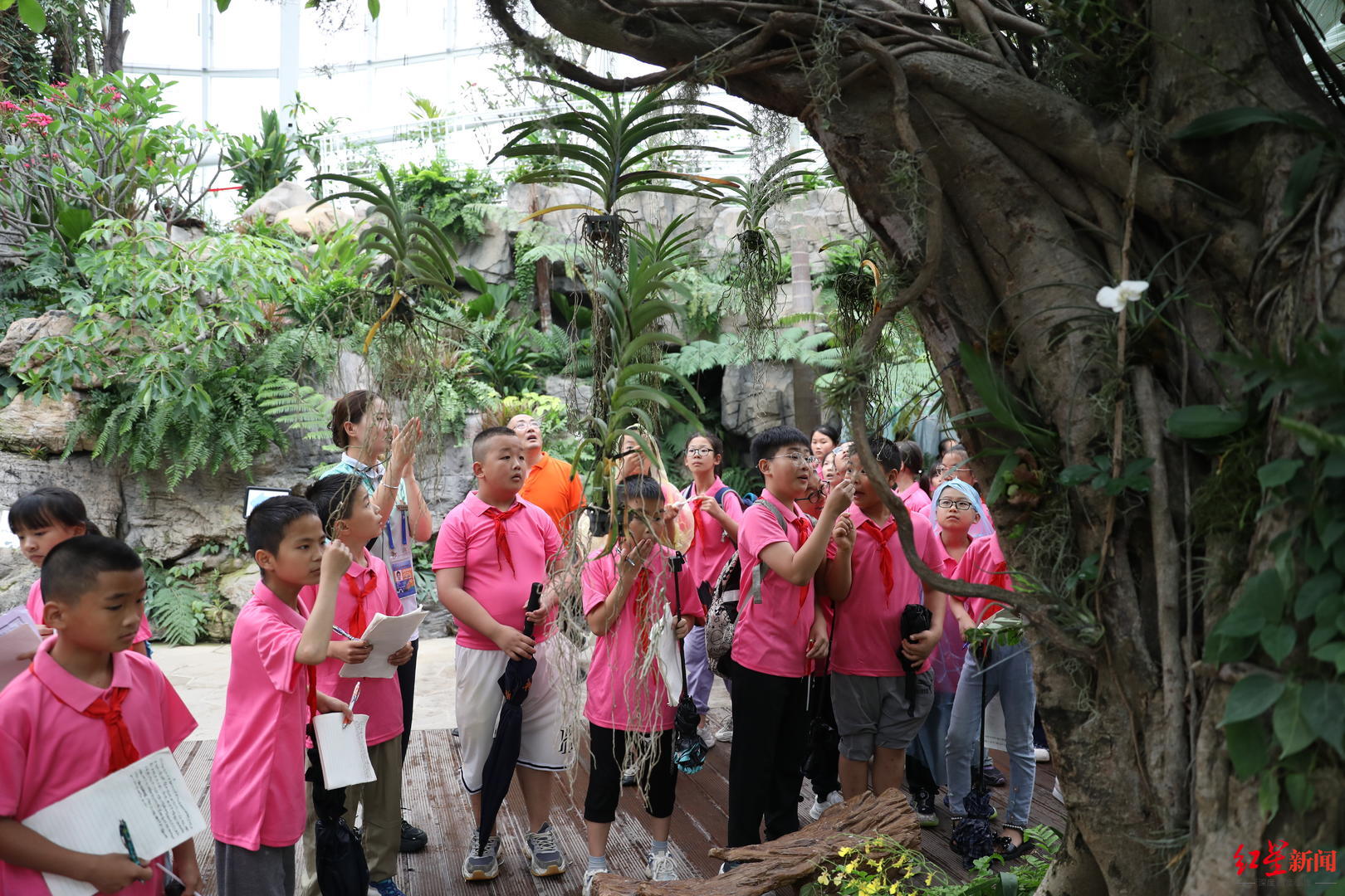 庞大的温室里,高耸的树木、粘稠的灌木丛、缠绕的藤蔓以及千般各样的奇外号卉,共同营造出一个充满异地风情的“热带雨林”宇宙。学生们踏进其中,感受着大当然的神奇魔力。