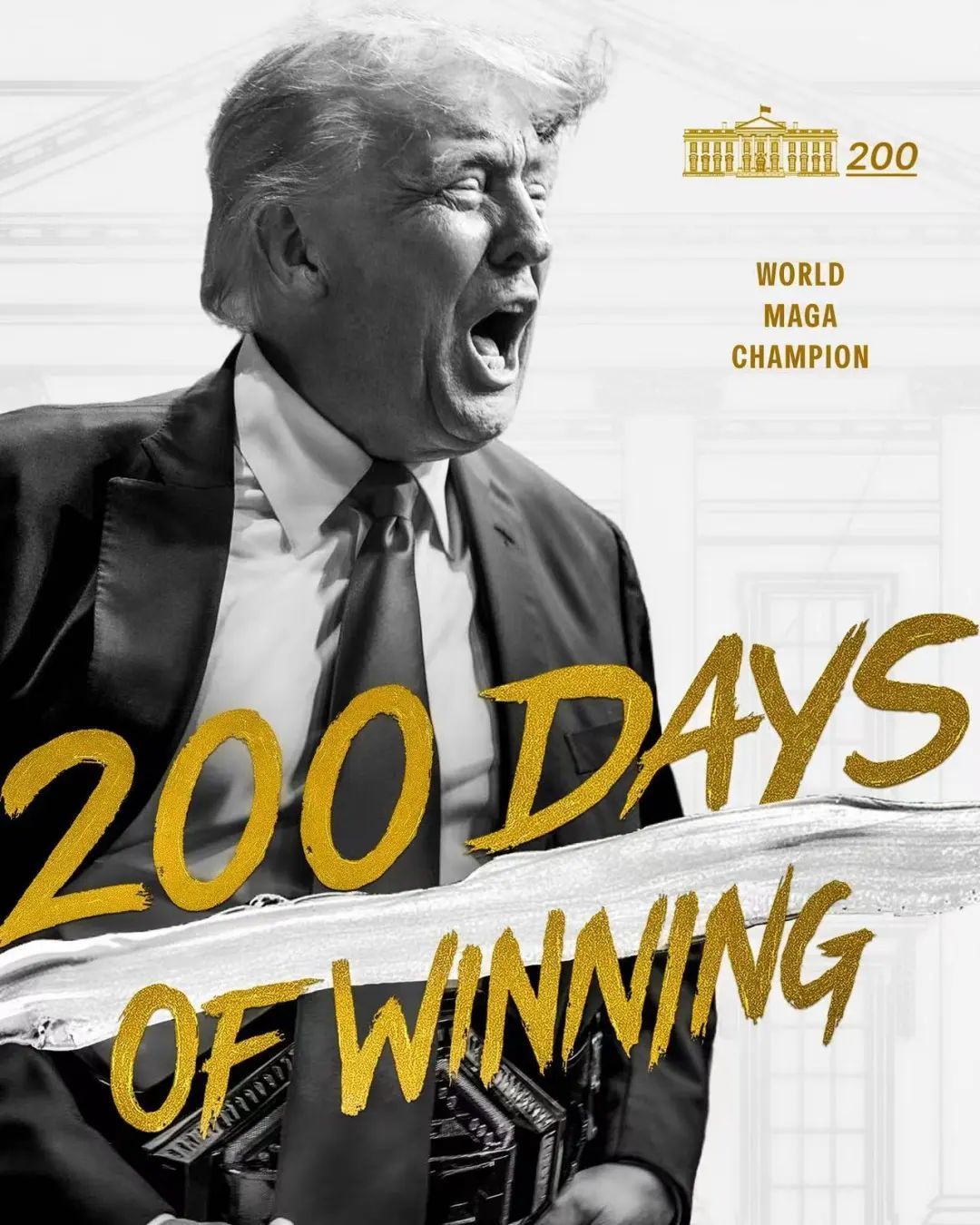 算起来,特朗普在野整整200天了,白宫贴出的宣传画,即是特朗普一直赢。