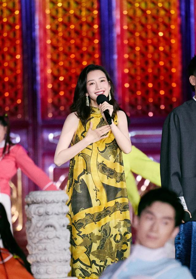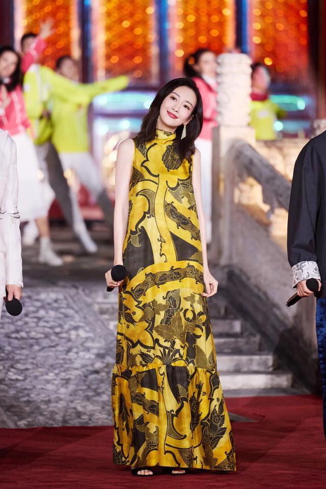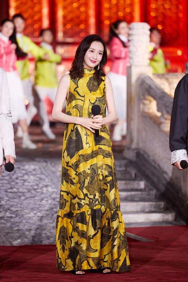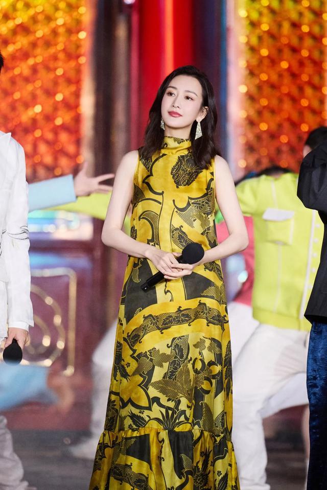 41岁王鸥一袭长裙,明黄情状如龙袍,靓丽大气。