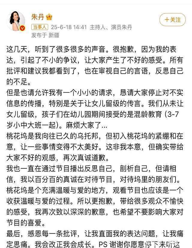 公论发酵后,朱丹飞速发长文谈歉,说我方没让女儿留级,孩子上的是混龄素质。还说我方对节目和嘉宾王人是诚恳的,但愿人人别影响对节主见喜欢。