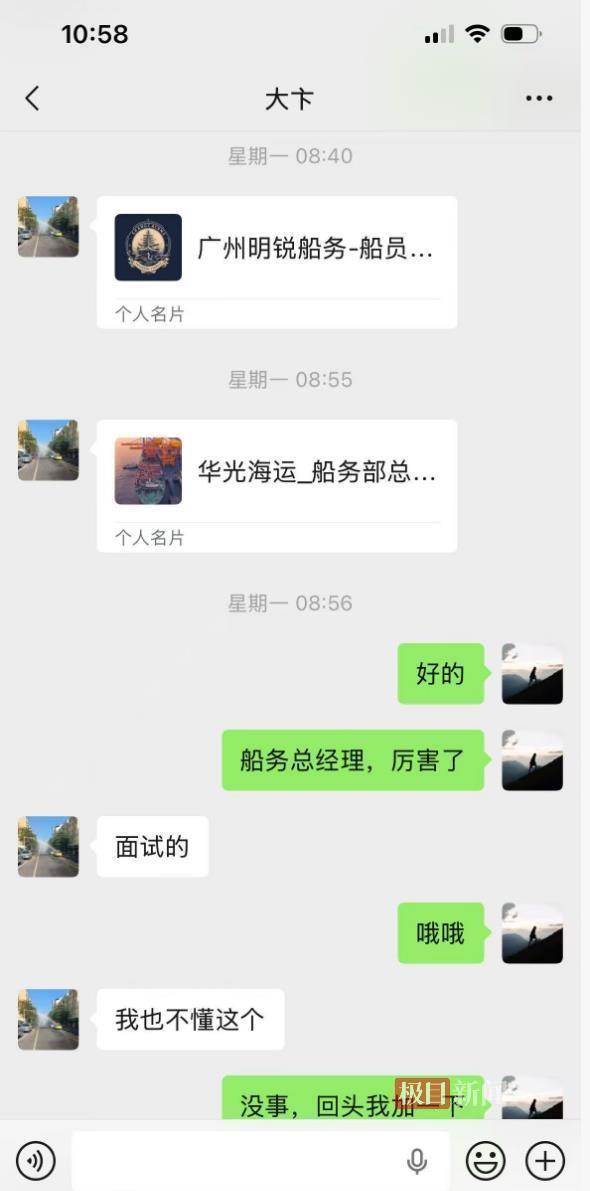 卞昌鹏的大学室友唐先生告诉极目新闻记者,毕业后卞昌鹏跑了一条船后就启看成念贸易了,因为本年经济压力大,他又念念持续跑船,还去进入了培训。客岁12月初,卞昌鹏但愿相干上远洋船,但一直莫得顺利,于是唐先生帮他在两个行业招聘网站上挂了简历。