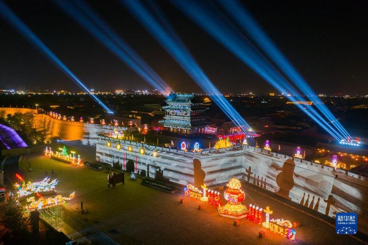这是1月29日在山西省晋中市平遥古城拍摄的灯光秀(无东谈主机相片)。