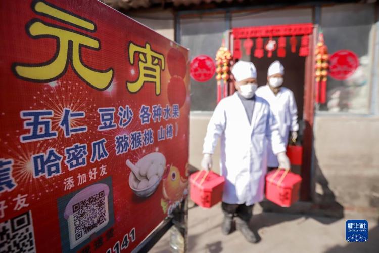 1月30日,在河北省迁西县兴城镇一家元宵作坊,工东谈主在输送元宵礼盒。