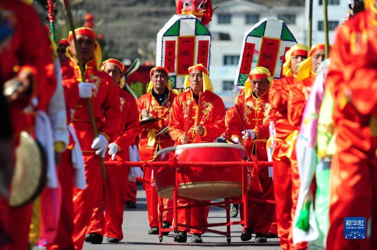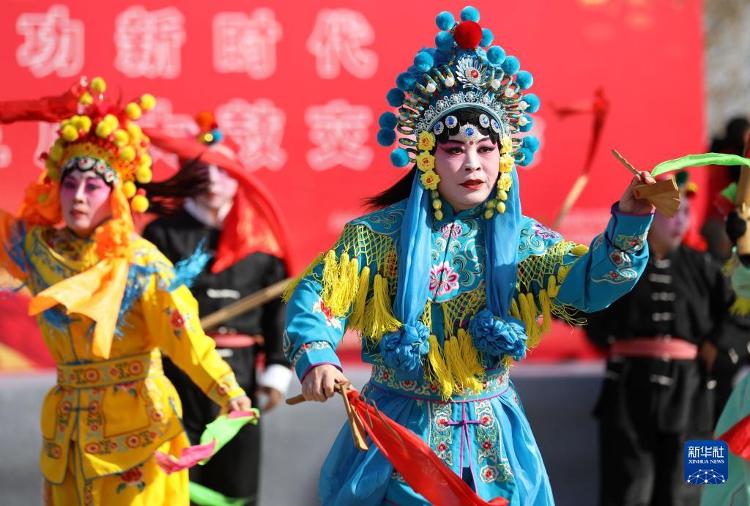1月29日,在河北省沧县旧州镇贾村,风气艺东谈主在饰演落子。