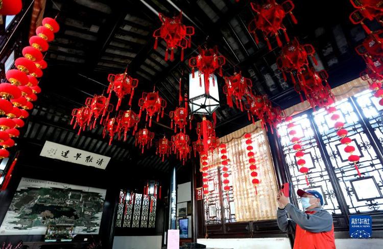 1月30日,又名旅客在江苏苏州网师园拍摄喜庆花灯。