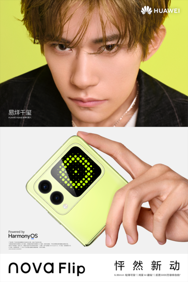 华为nova Flip曝光:潮水缱绻与先锋好意思学和会,易烊千玺B站秀新机