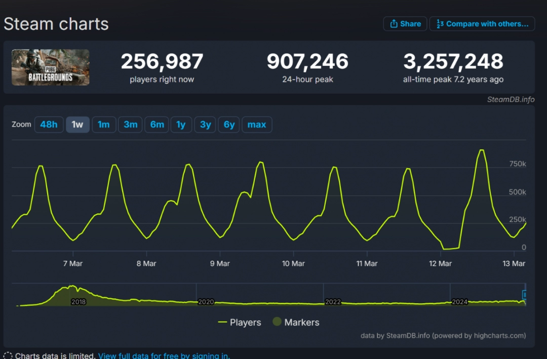 恰是因为有了这些变化,《PUBG》能力够一直保捏着咱们所熟谙阿谁简单、好玩的面目。而这,亦然为什么在8周年诞辰之际,《PUBG》又一次以90万东谈主的惊东谈主数据,冲到了Steam同期在线东谈主数榜单第二的原因。