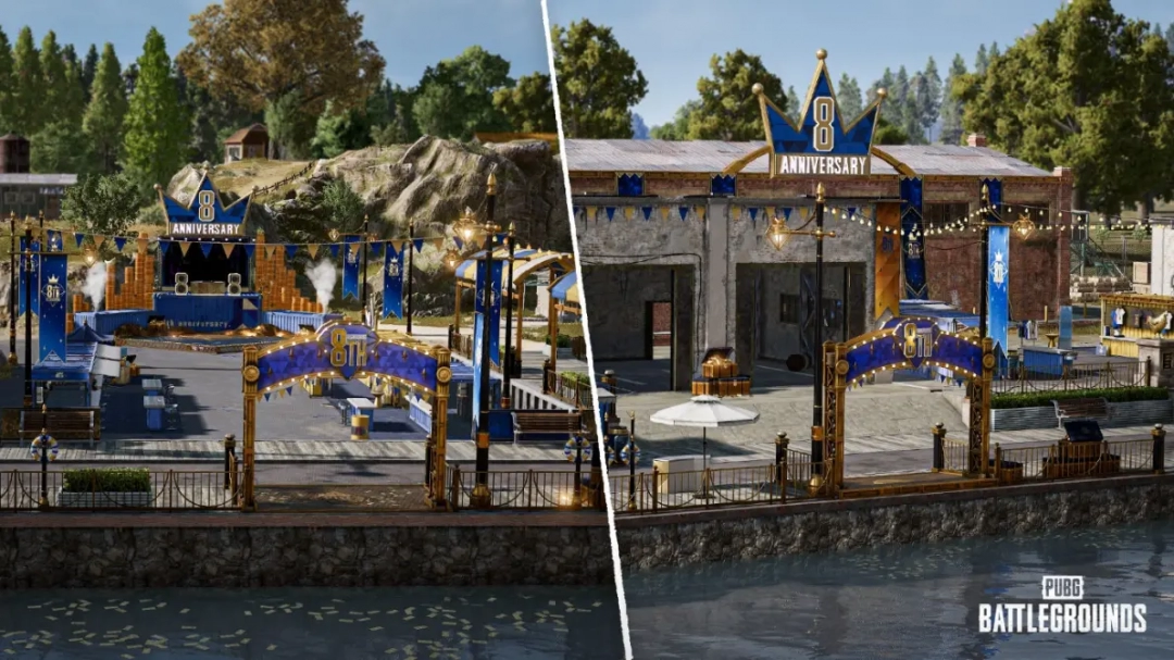 《PUBG》最近上线的8周年特色更新,就很好地体现出了这两点——在插足游戏后,领先映入玩家眼帘的,即是各舆图降生点里庞大的三级头机器东谈主。与此同期,经典舆图“艾伦格”的各处也随地可见的八周年派对主题守密,映衬出了浓厚的节日怨恨。